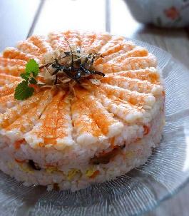主要原料:大米 鲜虾 鸡蛋 胡萝卜 香菇 泡姜丝 紫苏叶2片(或其它绿叶菜) 装饰用: 柴鱼花