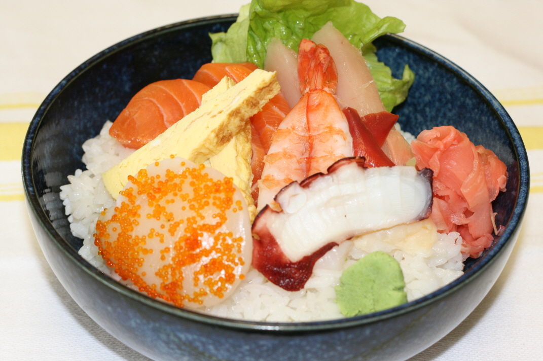 Tuna,Salmon,Ebi,Egg,Crab & Vegetable with Masago