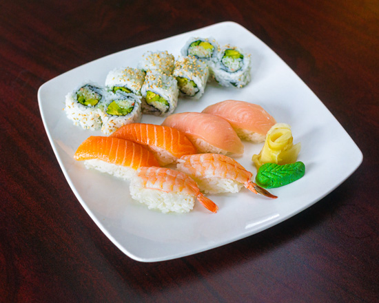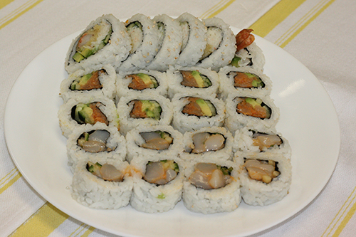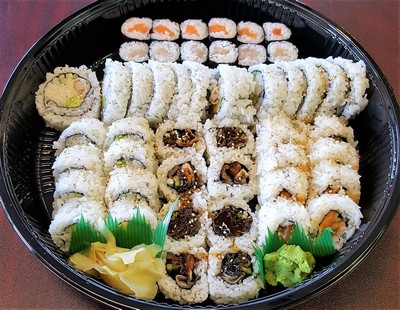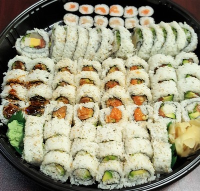 1 Tuna Roll, 1 Salmon Roll, 2 California Rolls, 1 BC Roll, 1 Spicy Tuna Roll, 1 Spicy Salmon Roll, 1 Alaska Roll, 1/2 House Roll, 1 Dynamite Roll