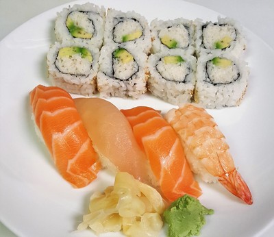 Califoma Roll & 1 pc of Tuna,Ebi,2 pcs Salmon,