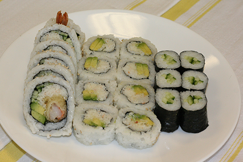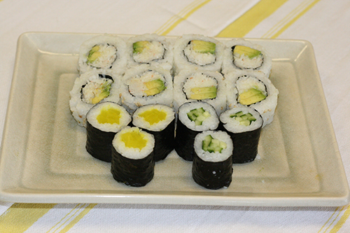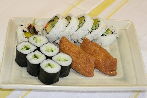 1 Kappa Roll, 1 Oshinko Roll, 1 Spinach Roll, 1 lnari Roll, 2 BC Roll, 1 Vegetable Roll, 1 Tempura Roll