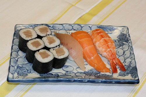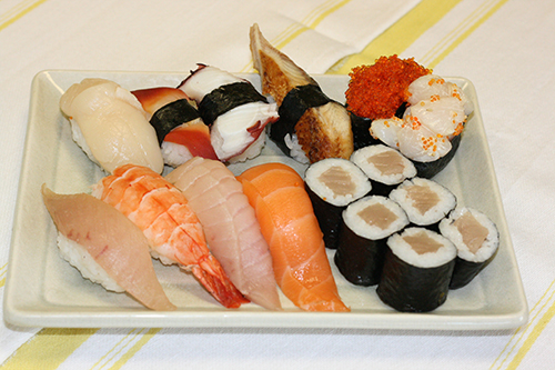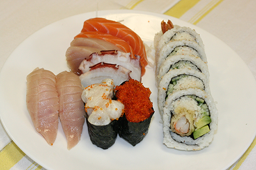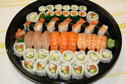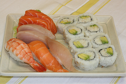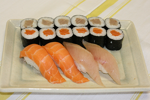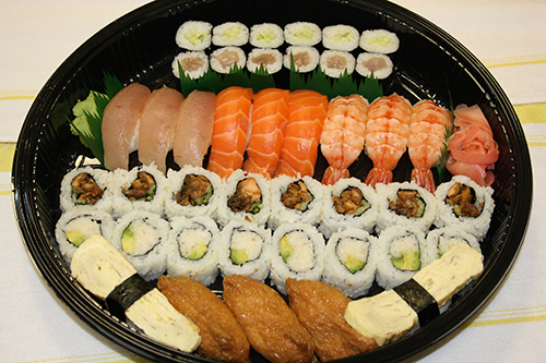 1 Tuna Rall,1 Kappa Roll,1 California Roll,1 Alaska Roll,2 pcs Tamago,3 pcs of Tuna,Salmon,Ebi,lnari