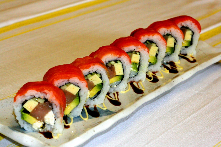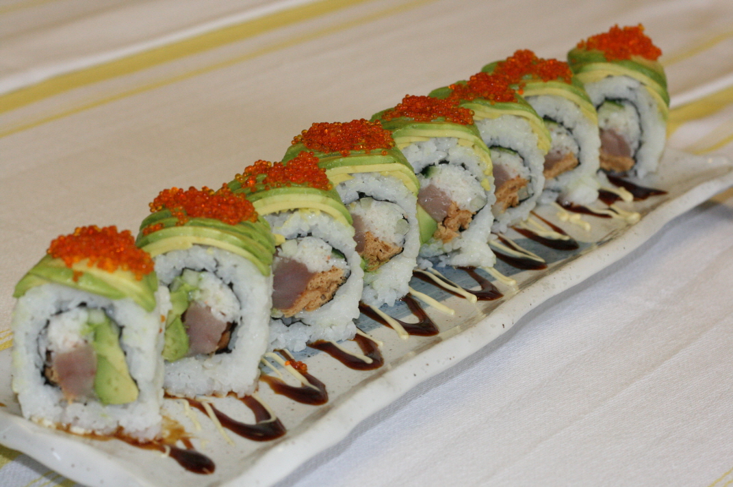 Tuna,Crab,Inari,Lettuce with Avcado & Masago on top