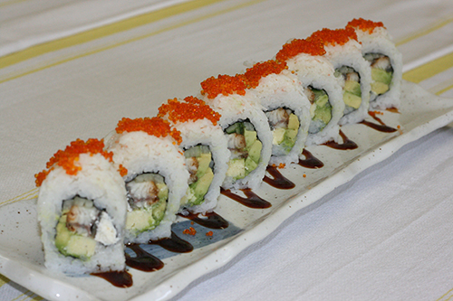 Unagi,Egg Cheese,Avocado with Crab & Masago on top